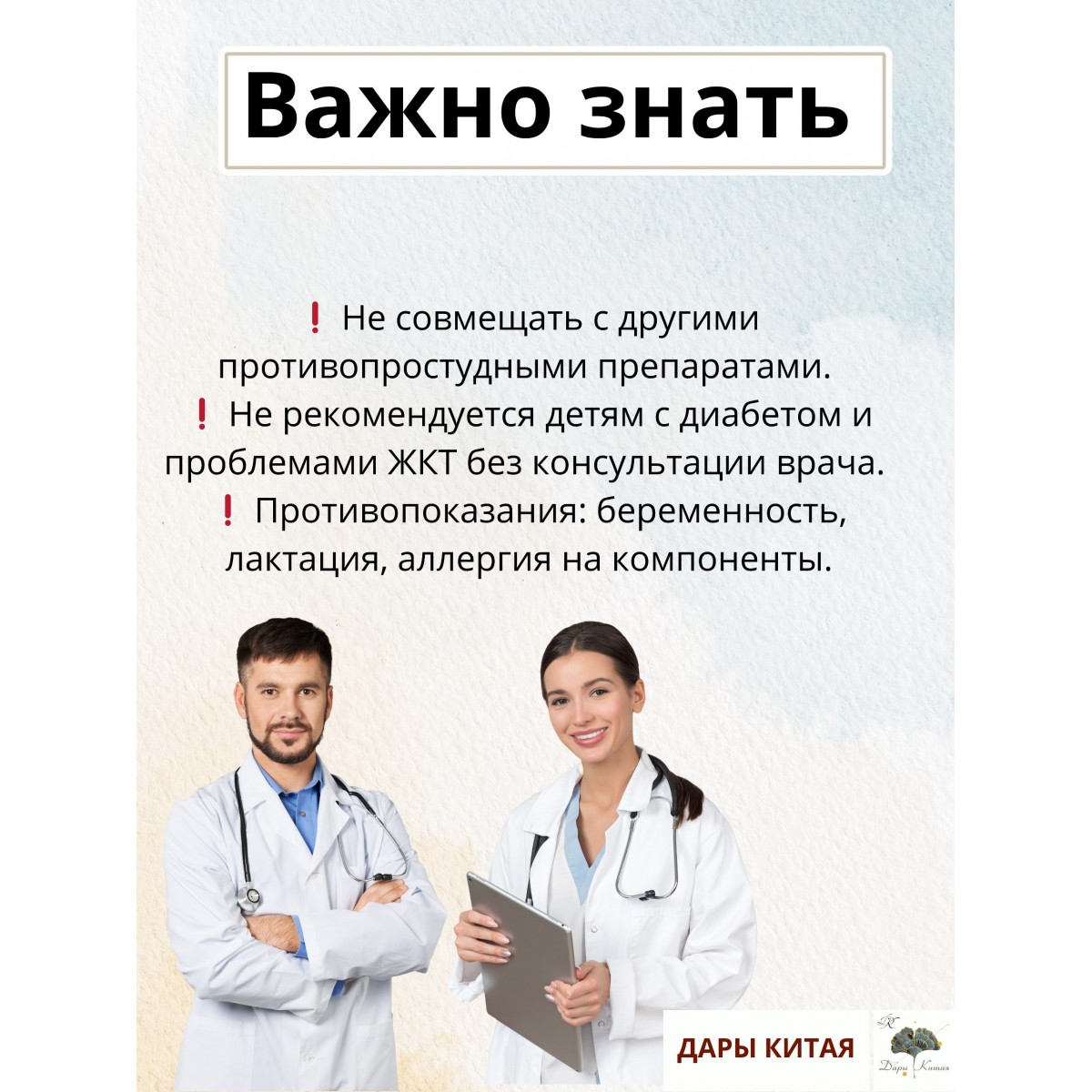 ❗ Не совмещать с другими противопростудными препаратами. ❗ Не рекомендуется детям с диабетом и проблемами ЖКТ без консультации врача. ❗ Противопоказания: беременность, лактация, аллергия на компоненты.